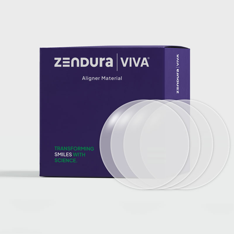 Zendura VIVAThe elastomeric middle layer of Zendura FLX combine with the hard outer shell to deliver the ability to rebound and recover from mechanical deformation, delivering up to 150%-plus better teeth movement force than competing materials over a 7-10 day wear period.